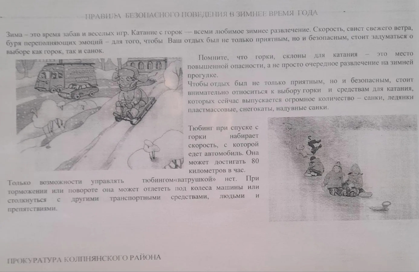 Правила безопасного поведения в зимнее время года (прокуратура Колпнянского района)